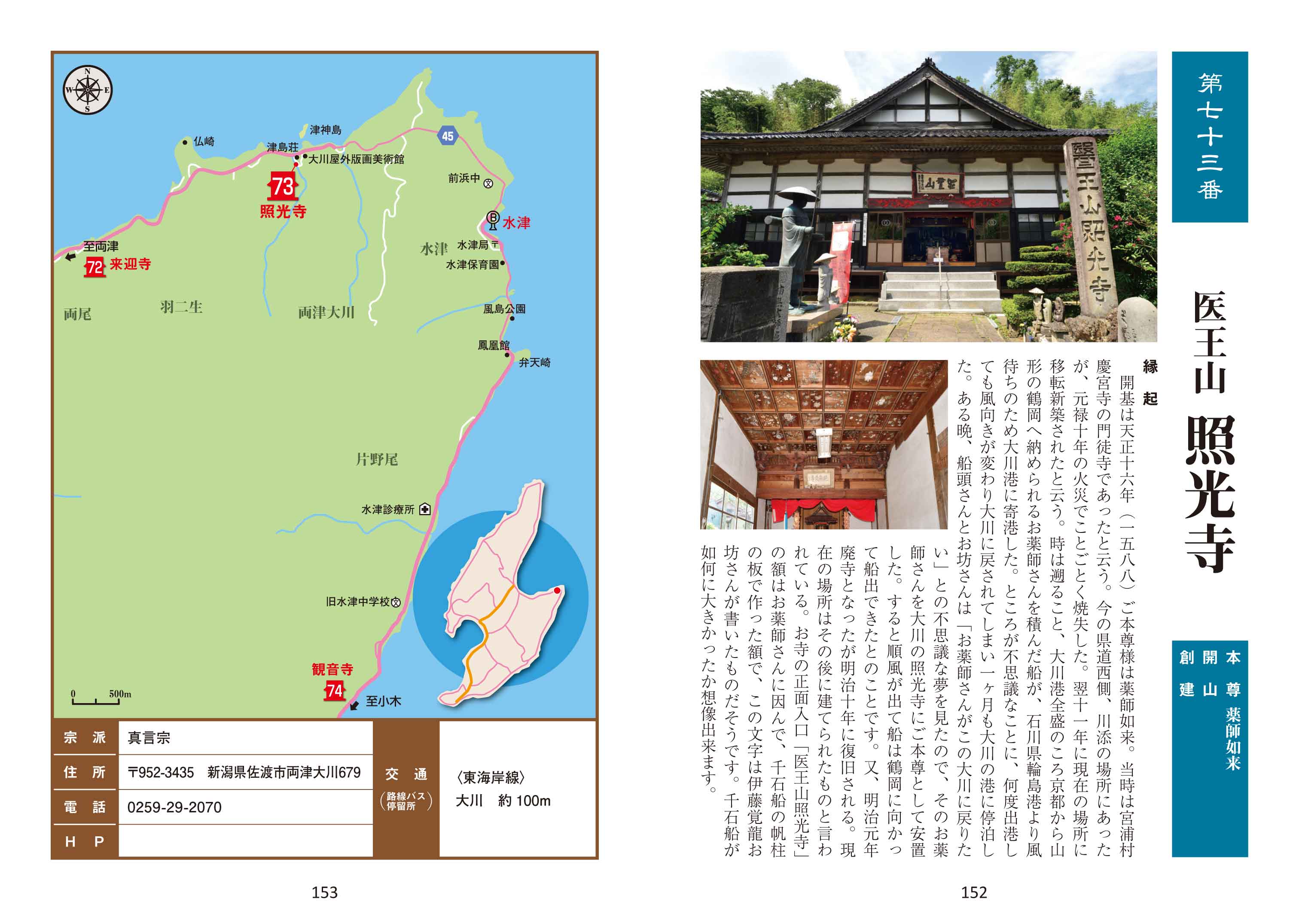 令和5年10月1日より、73番札所が「誓願寺」から「照光寺」(両津大川679)に変更となります。